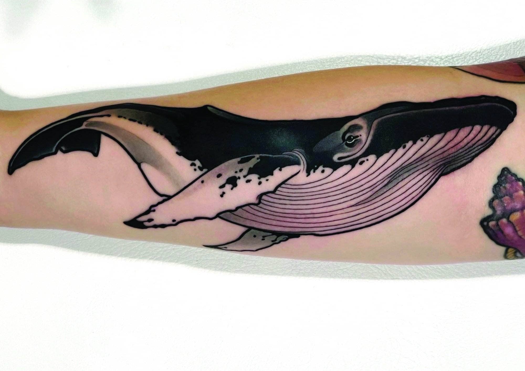 Neben klassischen Neo-Traditional Motiven wie Gesichtern oder Tieren, tätowiert er auch gerne Porträts und Motive aus der Film- und Musikgeschichte.