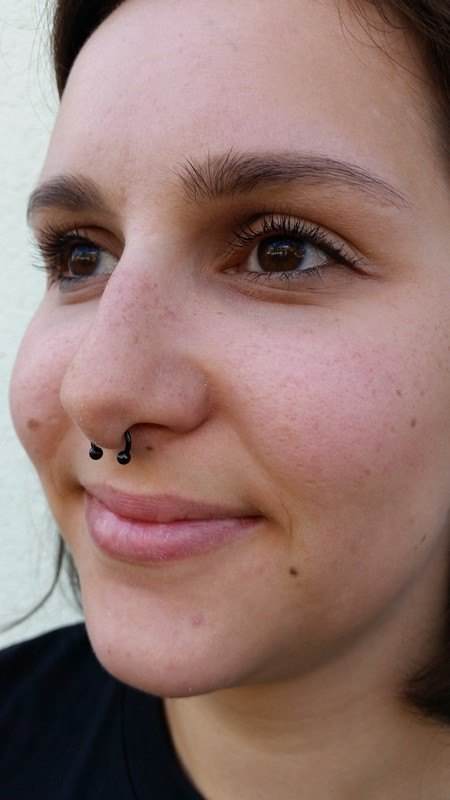 Beim Septum Piercing wird die Nasenscheidewand durchstochen und mit einem ausgewählten Schmuckstück versehen. Hier kann man sich zwischen einem Hufeisen Ring (halboffen mit zwei Kugeln) oder einer kleinen Banane entscheiden. Die Banane hat den Vorteil, das man den Schmuck quasi nur sieht, wenn man von unten in die Nase schaut, was sich vor allen Kunden anbietet, die ihr Piercing im Beruf eventuell verstecken müssten. Nach der Abheilung können sowohl Ringe, als auch Bananen getragen werden. Falls gewünscht kann man das Septum Piercing auch aufdehnen.