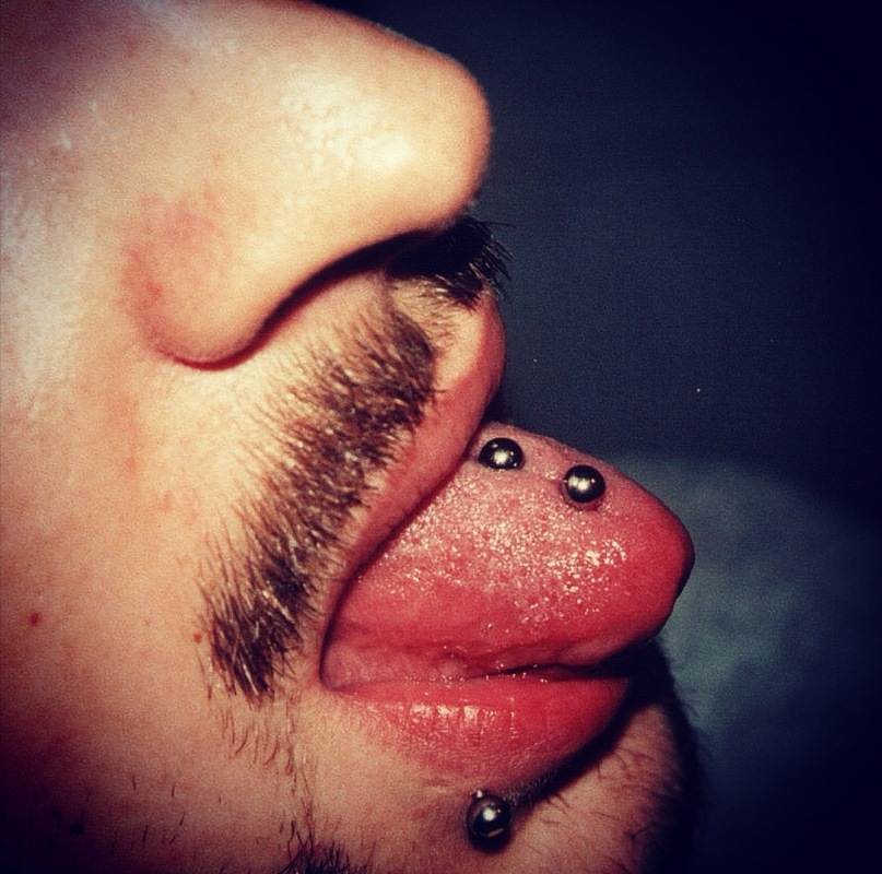 Venom Bites sind zwei vertikale Zungenpiercings die in relativ kurzem Abstand nebeneinander platziert werden. Dieses Piercing ist definitiv ein Eyecatcher.